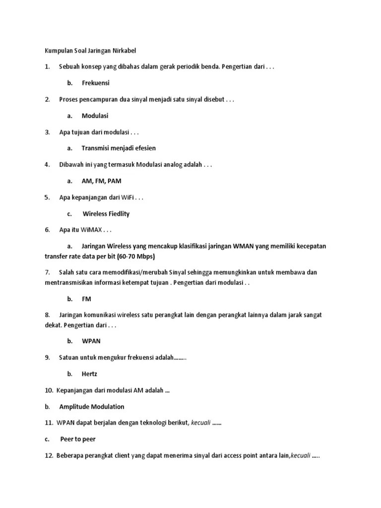 Download & view kumpulan soal jaringan nirkabel + jawaban as pdf for free.